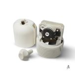 PORTALÁMPARAS E27 CON INTERRUPTOR - Material: Plástico - Con Capuchón RM10x1 - Conexión a Tornillo - Portalámpara: E27 (Rosca Común) - Color: Blanco - Detalle Interruptor Rotativo - Largo Perilla: 2cm aprox - SKU: 2736B