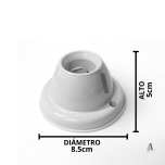 PORTALÁMPARA RECEPTÁCULO E27 - Modelo: Recto - Zócalo: E27 - Medidas: Diámetro de la Base 8.5cm / Alto 5cm - Distancia entre agujeros de tornillos: 68mm - Color: Blanco - SKU: 1010683
