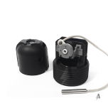 PORTALÁMPARAS E27 CON INTERRUPTOR - Material: Plástico - Con Capuchón RM10x1 - Conexión a Tornillo - Portalámpara: E27 (Rosca Común) - Color: Negro - Detalle cromado - Largo del Piolín: 17cm aprox